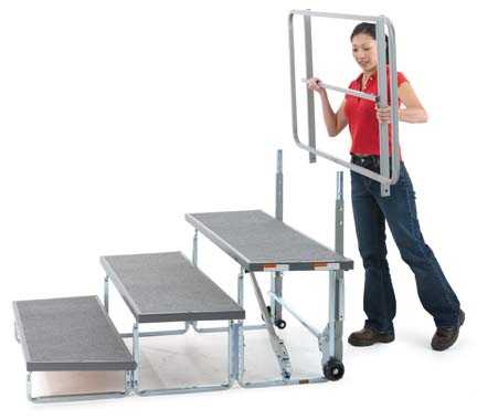 Se fixe rapidement pour plus de sécurité, sans outil. Rail arrière pour praticables 1,2 m qui se fixe en l'espace de quelques secondes et se transporte facilement.
