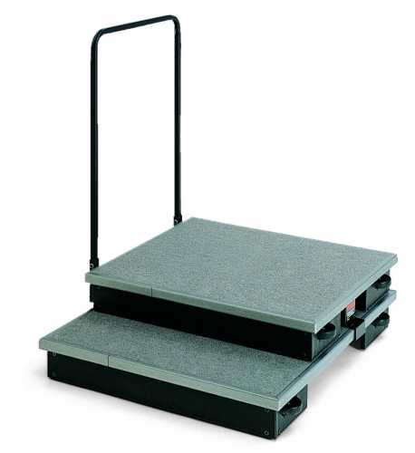 - Il podio superiore si attacca in modo sicuro al podio base e comprende una ringhiera si sicurezza staccabile