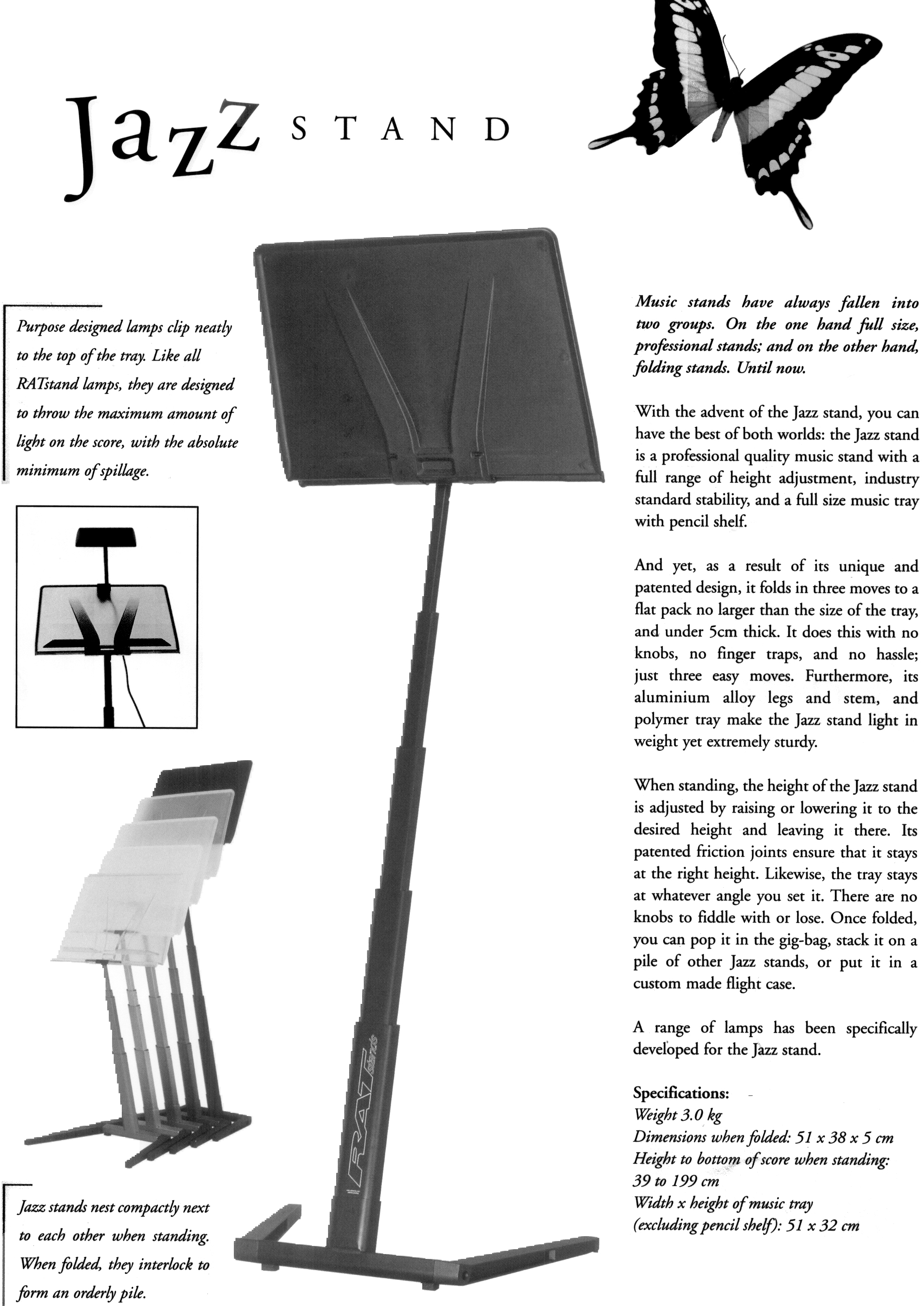 - Leggero, set-up semplice, facile da trasportare e abbordabile. Queste caratteristiche rendono il leggio Jazz ideale per il musicista in viaggio
