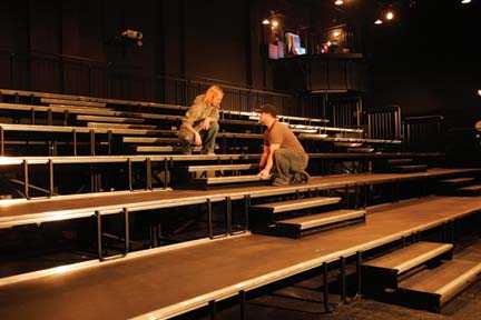Большой вместительности универсальные поярусные сиденья легко сконструированы для того чтобы удовлетворять Вашим требованиям для выступлений. Верхний ряд - инновационный способ добавить вместительности с минимальным усилием в короткое время. Просто выкатите его, разложите и скрепите вместе.